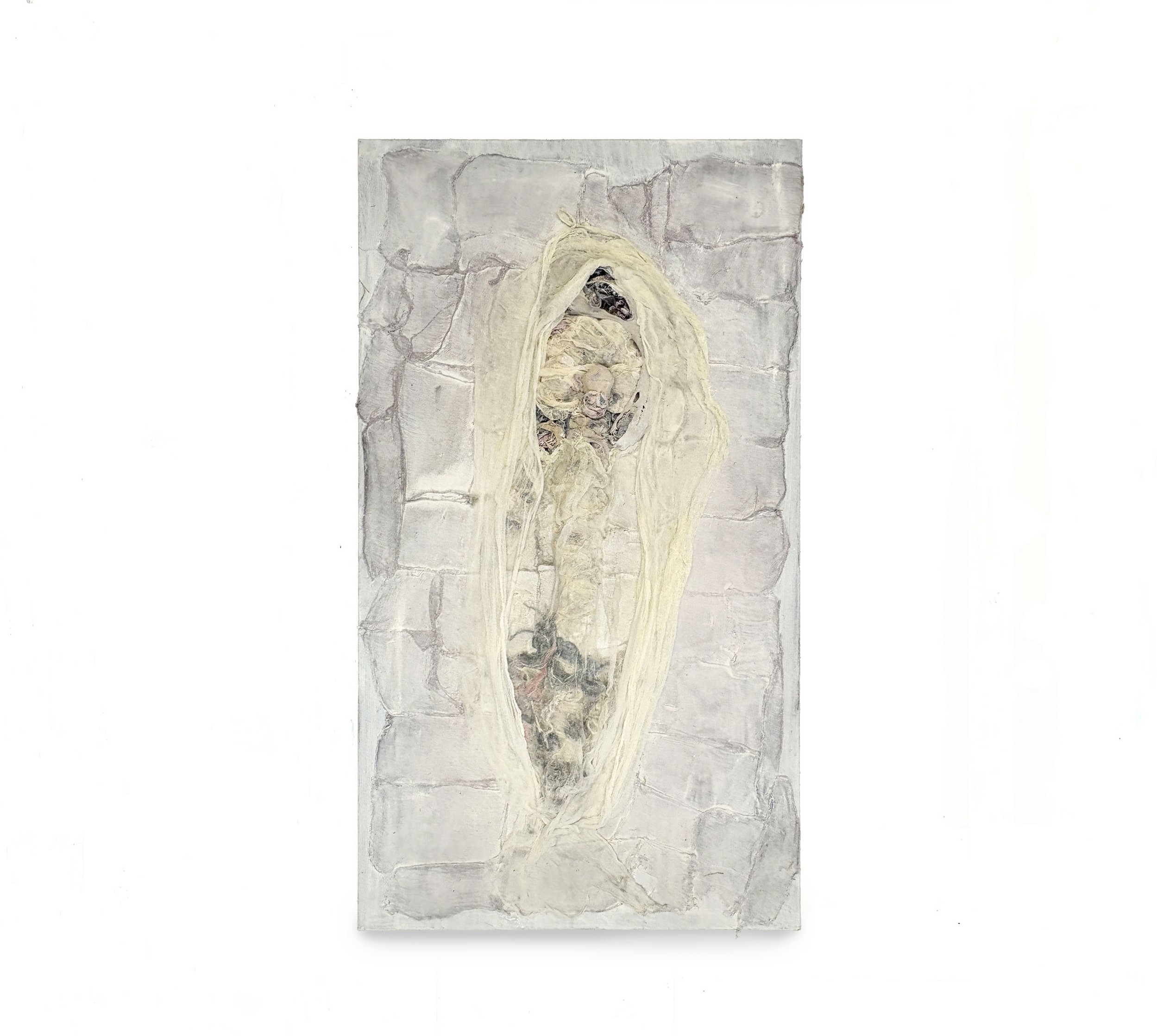 Jinseok Lee works with organic remnants — straw, gauze, worn clothing, earth — materials that have already passed through a body's time. Scraping, pressing, twisting, and reweaving these remnants, he works at the Critical Point between collapse and persistence: the threshold where matter holds what could not be spoken.