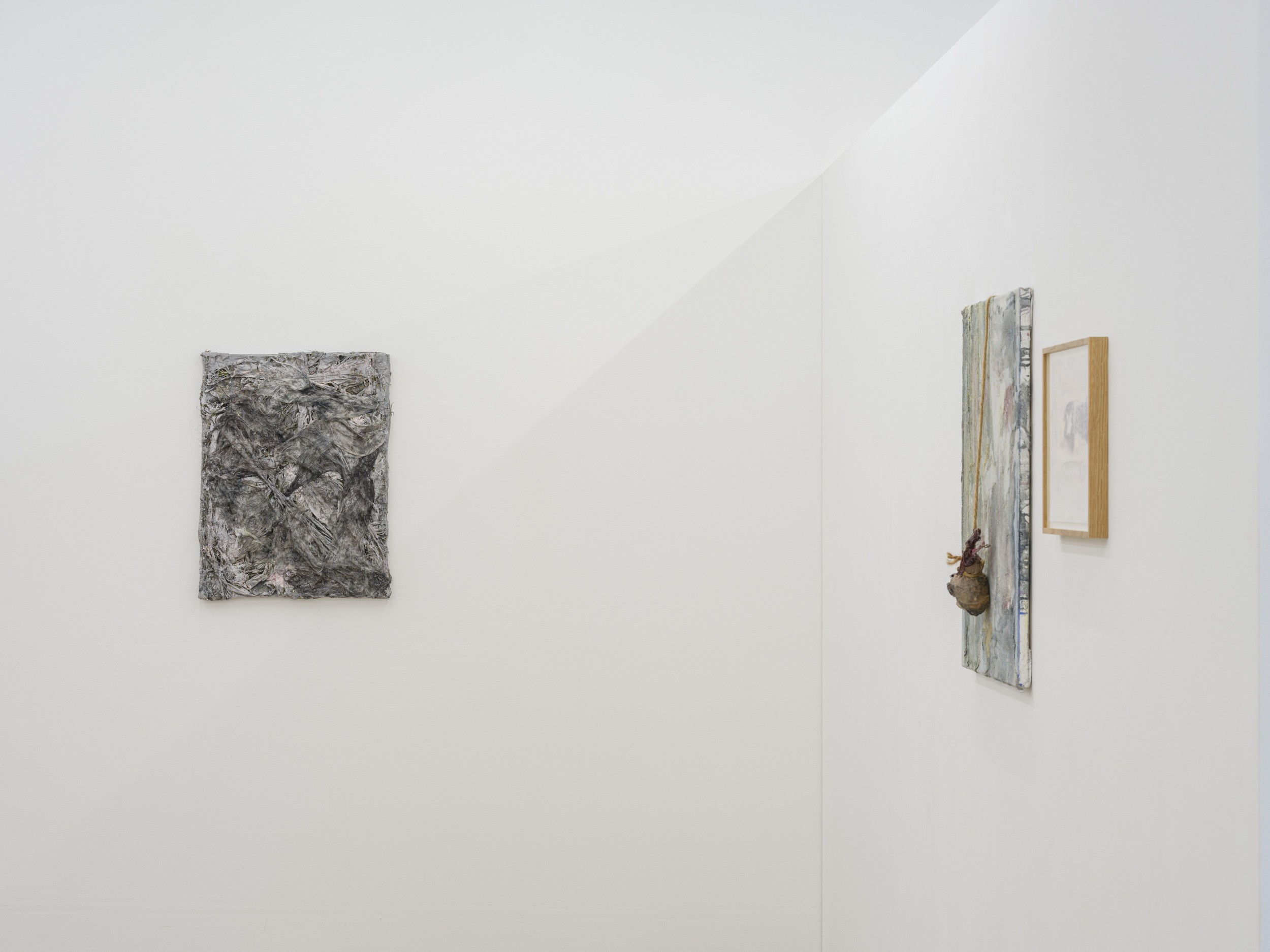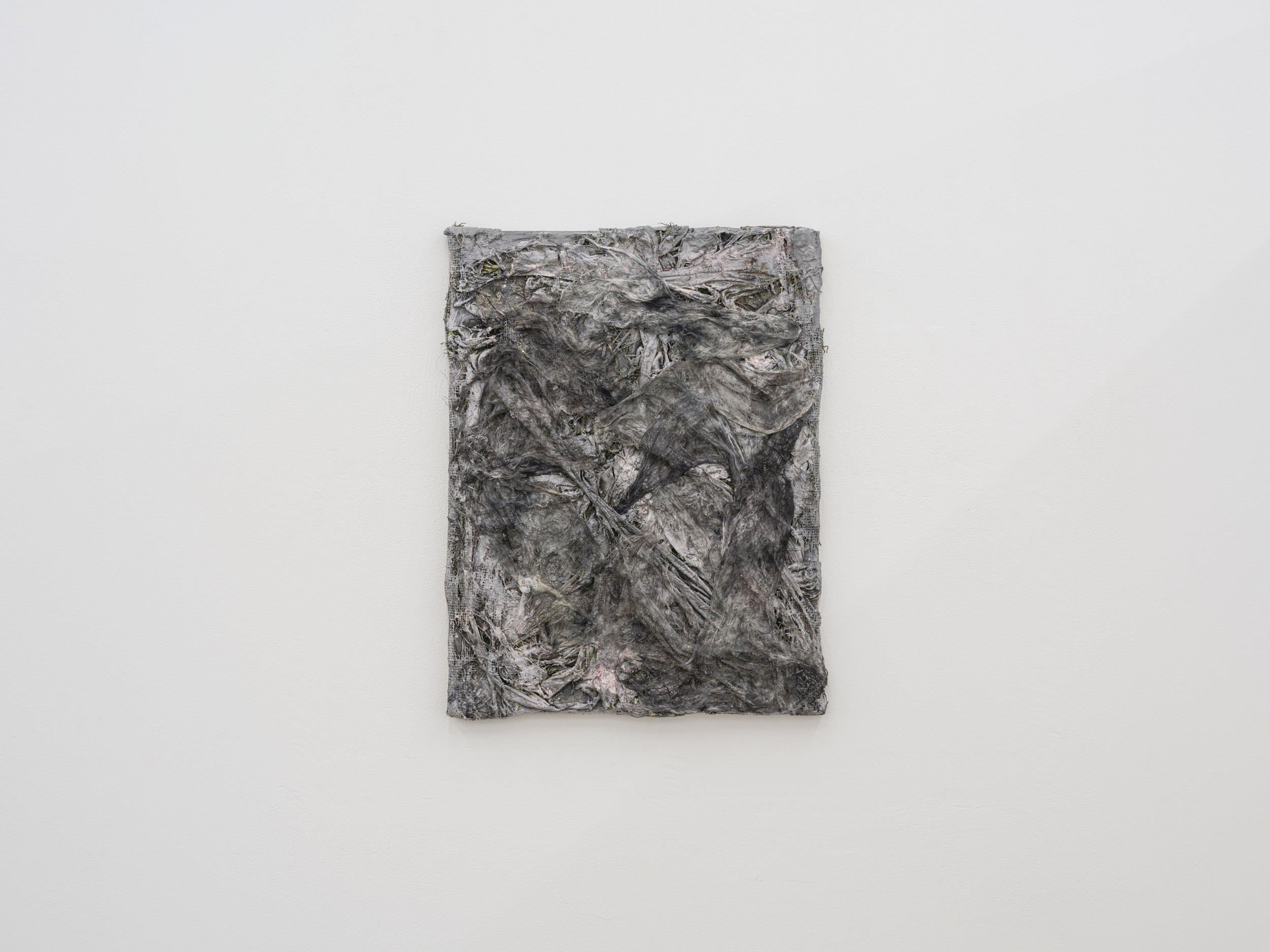 Raw materials such as straw, gauze, charcoal, or burnt fabrics lie hidden beneath a heavy layer of paint. In some areas, they seem to grow out from the surface of the canvas. The surface structure appears fragile, resistant, and imperfect. Fractures, cracks, and frayed layers cover original fragments and expand through cyclic processes. Remnants flow, settle, linger, and transform into new surfaces that emerge as an aging patina or manifest in the form of sculptural objects. Lee's works emerge from a continuous sequence of repetition, layering, condensation, and dissolution. Mixed media determines the application of color, while materials are damaged or draped into organic forms, only to be repainted, exposed, or dissolved once again. Traces of temporality—beginning, decay, and renewal—are mutually dependent in their rhythm. Figuration is found only in allusion; it is never concrete, yet shockingly clear in its posture, its pain, and its transience. The resulting deposits are reminiscent of geological layers that reflect the remnants of a past state. They are sediments that rest, tear open, shift, and temporarily re-form. His working method moves within a field of tension between control and letting go, burden and break, and rigid as well as dynamic development. Structural and societal changes provide the starting point for his engagement with materiality, which reveals the vulnerability of internal and external processes of transformation and touches the core of human existence. Can emotions and memories be preserved in the long term? How profound or resilient does an organism of regeneration and growth appear before its completion?