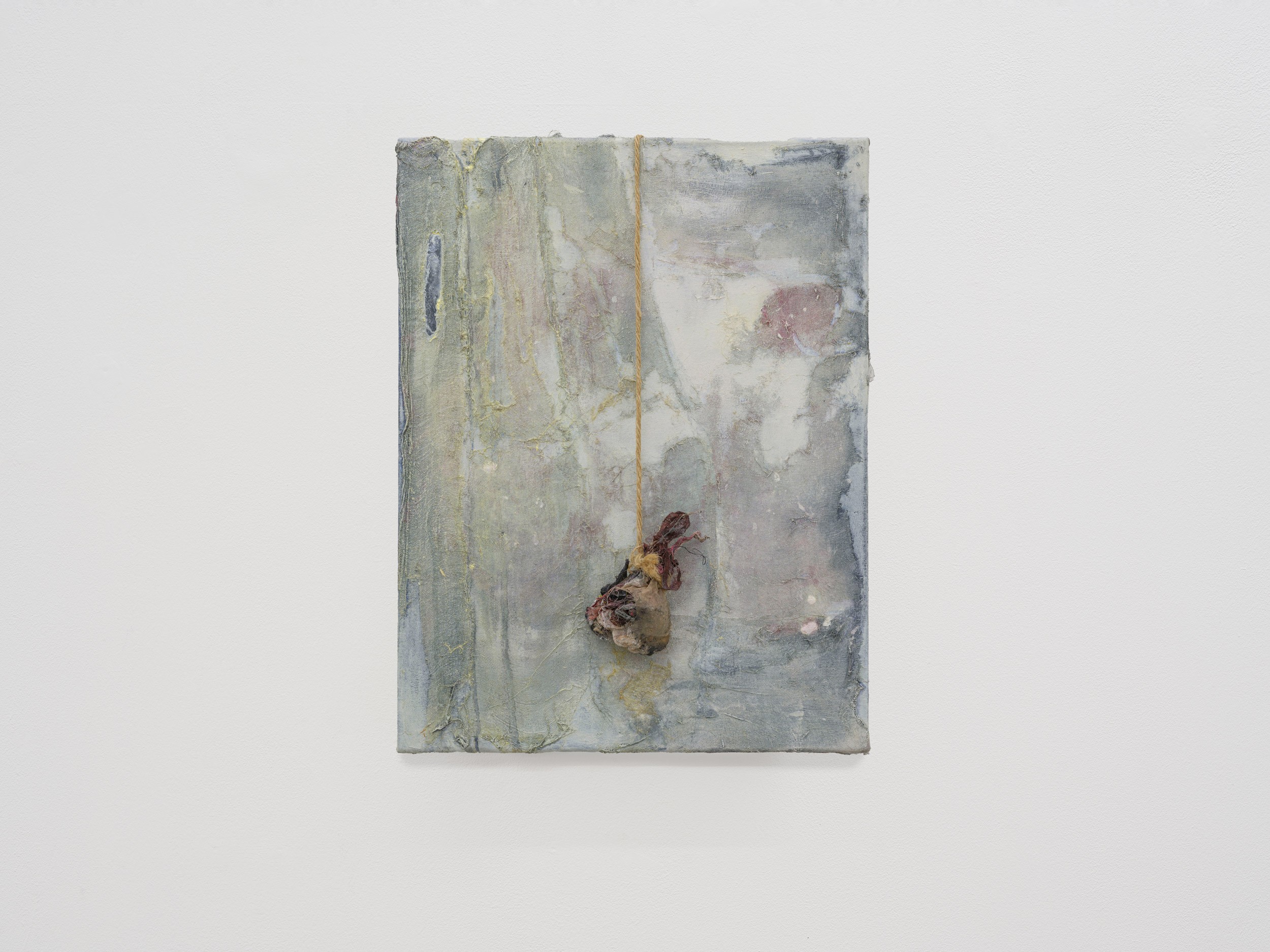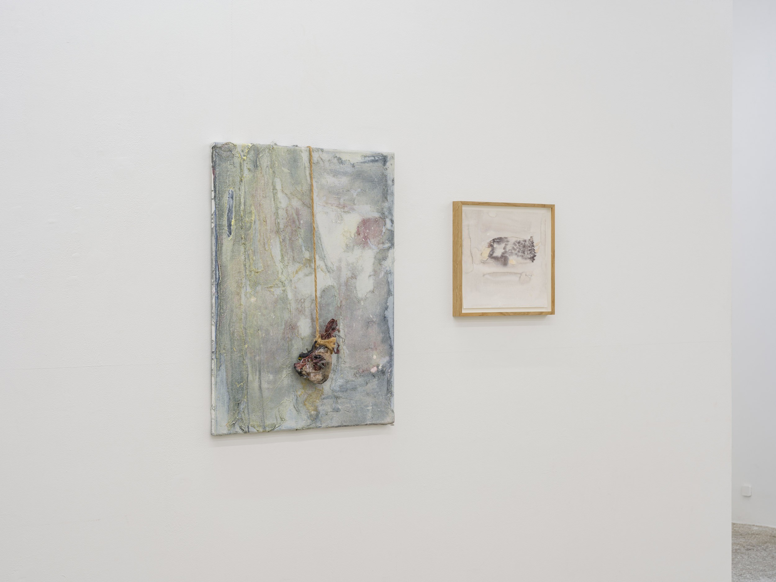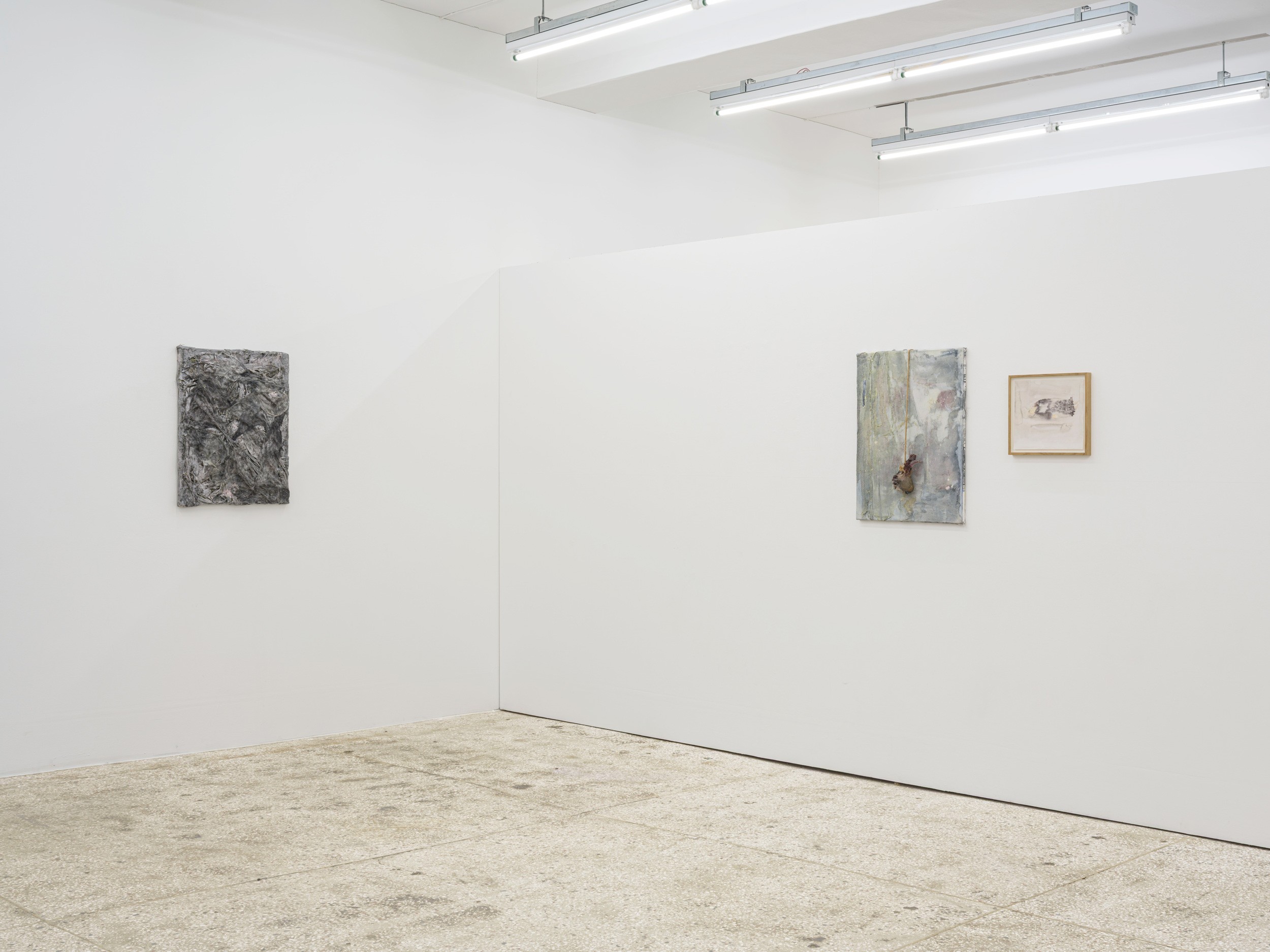 Raw materials such as straw, gauze, charcoal, or burnt fabrics lie hidden beneath a heavy layer of paint. In some areas, they seem to grow out from the surface of the canvas. The surface structure appears fragile, resistant, and imperfect. Fractures, cracks, and frayed layers cover original fragments and expand through cyclic processes. Remnants flow, settle, linger, and transform into new surfaces that emerge as an aging patina or manifest in the form of sculptural objects. Lee's works emerge from a continuous sequence of repetition, layering, condensation, and dissolution. Mixed media determines the application of color, while materials are damaged or draped into organic forms, only to be repainted, exposed, or dissolved once again. Traces of temporality—beginning, decay, and renewal—are mutually dependent in their rhythm. Figuration is found only in allusion; it is never concrete, yet shockingly clear in its posture, its pain, and its transience. The resulting deposits are reminiscent of geological layers that reflect the remnants of a past state. They are sediments that rest, tear open, shift, and temporarily re-form. His working method moves within a field of tension between control and letting go, burden and break, and rigid as well as dynamic development. Structural and societal changes provide the starting point for his engagement with materiality, which reveals the vulnerability of internal and external processes of transformation and touches the core of human existence. Can emotions and memories be preserved in the long term? How profound or resilient does an organism of regeneration and growth appear before its completion?